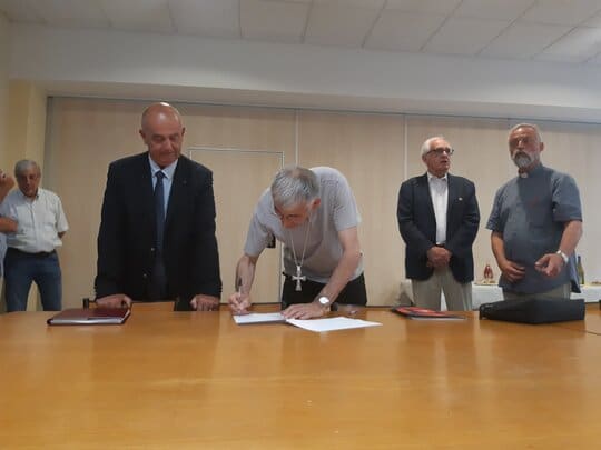 Dans le cadre d’un partenariat du Diocèse Belley-Ars, du Sanctuaire d’Ars et de la Fondation du Patrimoine, vous pouvez aider le Sanctuaire à restaurer l’église Notre-Dame de la Miséricorde en faisant un don sur le site de la Fondation du Patrimoine. Après un bref discours d’accueil du Père Rémi Griveaux, curé-recteur du Sanctuaire d’Ars, Mgr Pascal Roland – évêque du Diocèse – et M Alain Silvy – délégué régional Rhône-Alpes de la Fondation du Patrimoine -, ont signé le 21 juin 2022 la convention lançant officiellement la collecte de dons pour les travaux de l’église Notre-Dame-de-la Miséricorde d’Ars.