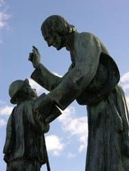 C’est en ce lieu que ce dresse actuellement le monument de bronze réalisé en 1936 par Castex. Le jeune Antoine ne perçut certainement pas la portée de la réponse : toute la mission du futur Curé d’Ars est là, montrer le chemin du Ciel à chacun, c’est-à-dire les conduire sur le chemin de la vie avec Dieu, le chemin de la sainteté.