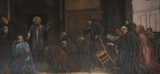 Prêtre se consumant d’amour devant le Saint-Sacrement, tout donné à Dieu, à ses paroissiens et aux pèlerins, il meurt le 4 août 1859, après s’être livré jusqu’au bout de l’Amour. Sa pauvreté n’était pas feinte. Il savait qu’il mourrait un jour comme « prisonnier du confessionnal ».