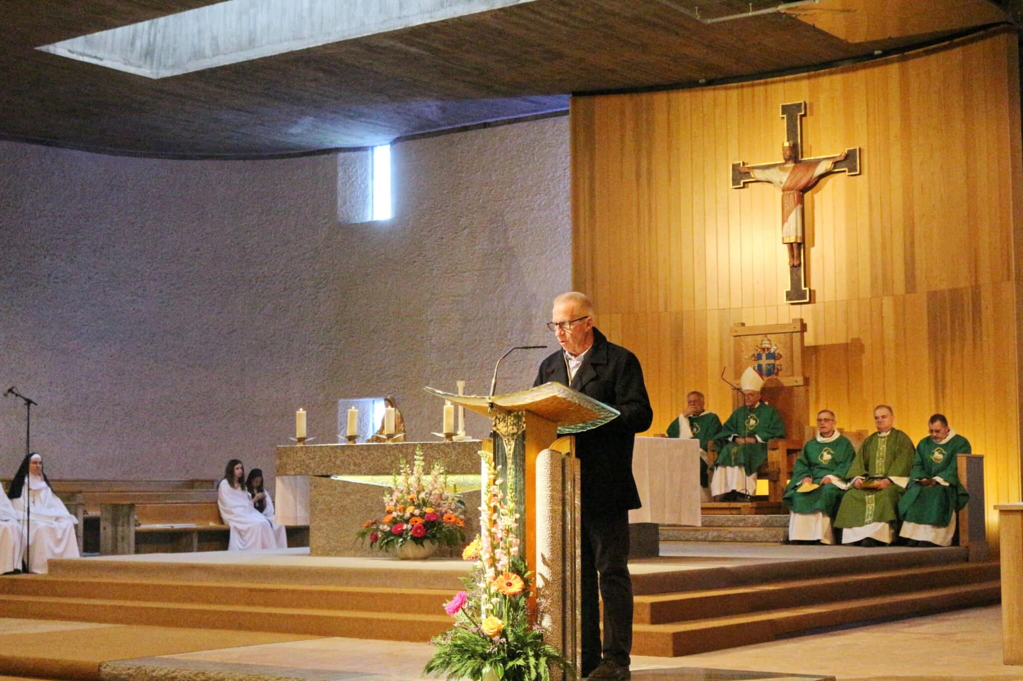 La messe suivie d’une bénédiction, la visite de l’exposition Pinsard (architecte de l’art sacré contemporain).